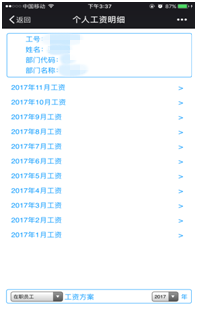 点击“工资查询”,选择年份与查询方案,可以查询每月工资明细。