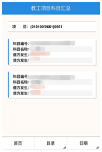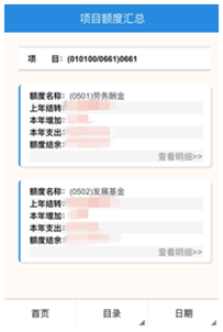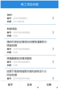 点击“项目明细”,可查询指定日期区间内教工本人管理的项目的余额、额度、明细账、往来款、科目汇总、银行来款等信息。(注:本功能暂不支持跨年查询)
