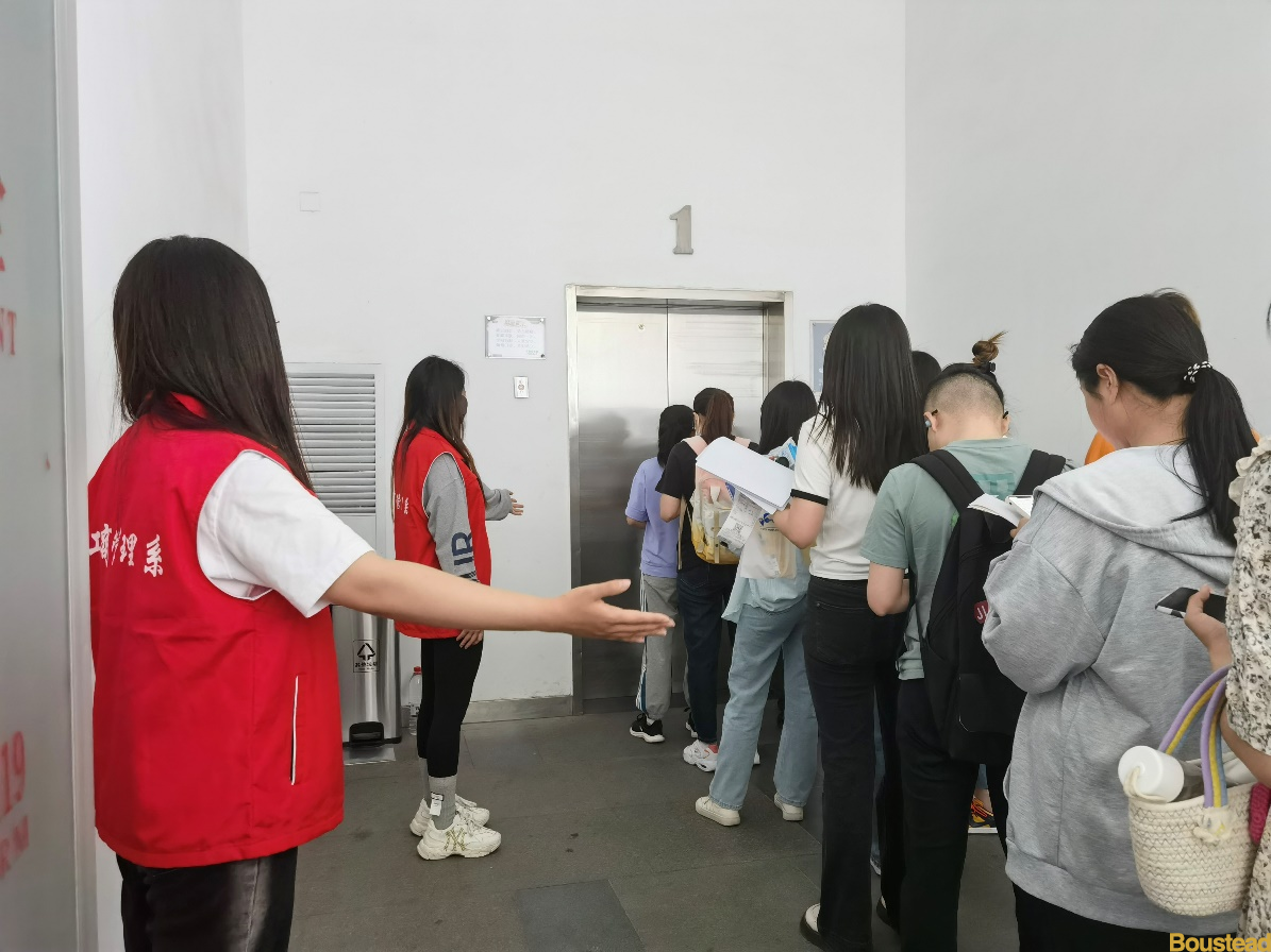 为贯彻党的二十大精神、落实宝德学院“六大工程”,切实发挥共产党员的带头引领作用,贯彻落实为人民服务的宗旨,以实际行动建设文明校园。工商管理系学生第一党支部、学生第二党支部积极响应学校号召,于本学期继续开展“为同学做好事办实事”电梯维序志愿服务活动。该志愿服务已累计开展3个学期。