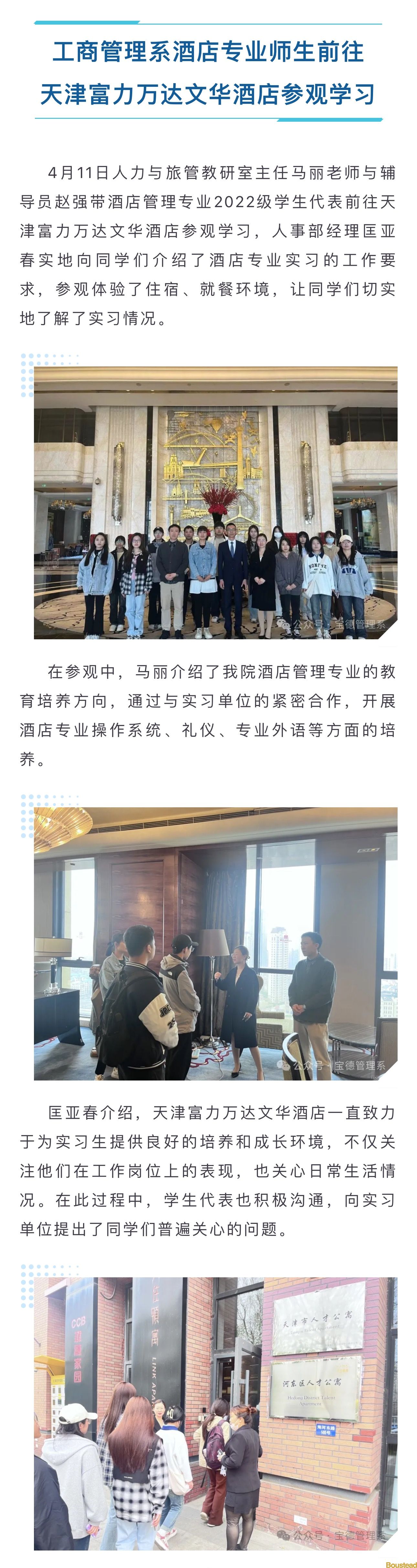 工商管理系酒店专业师生前往天津富力万达文华酒店参观学习