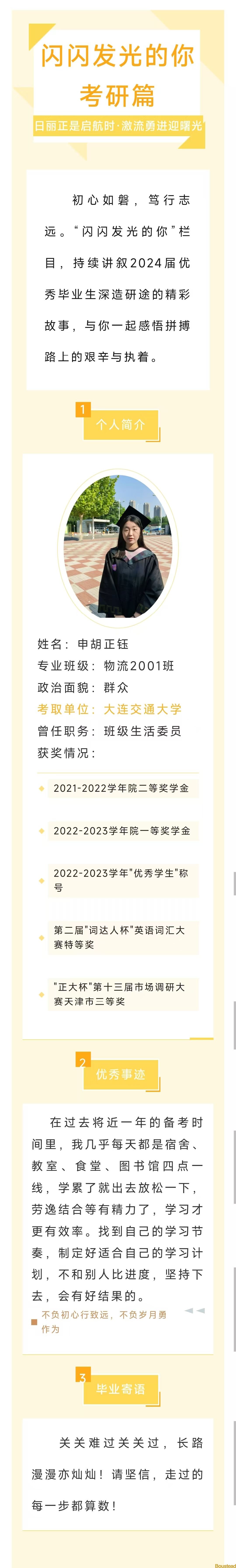 闪闪发光的你|工商管理系2024届优秀毕业生故事分享之考研上岸篇——申胡正钰