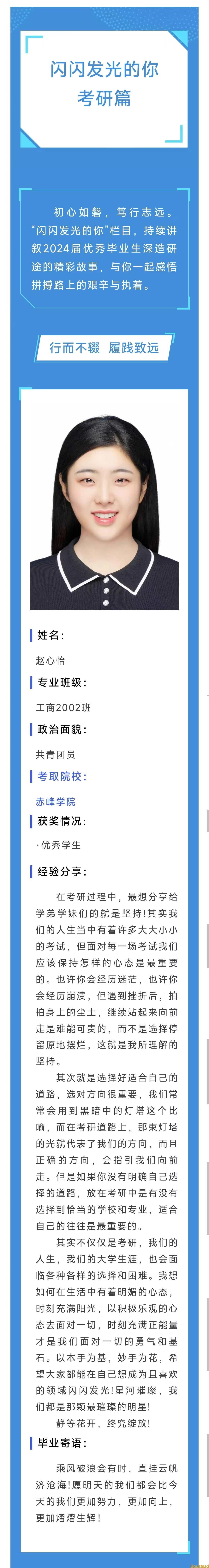 闪闪发光的你|工商管理系2024届优秀毕业生故事分享之考研篇——赵心怡