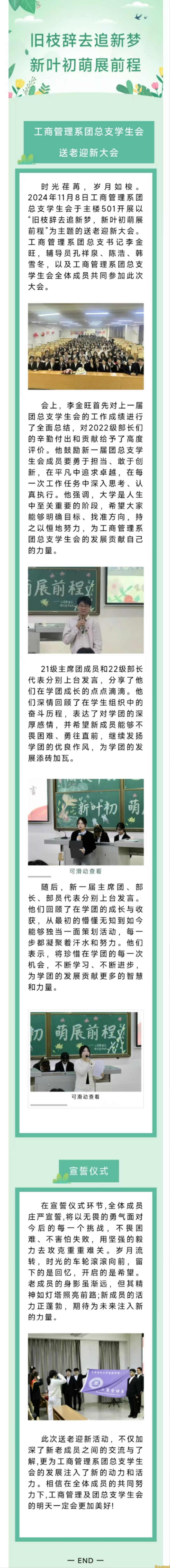旧枝辞去追新梦,新叶初萌展前程-工商管理系团总支学生会送老迎新大会