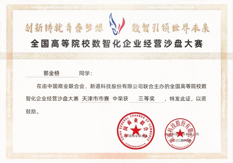 基于本实验室课程,教师组织学生参加2024和2025年《全国高等院校数智化企业经营沙盘大赛》,分别获得市级三等奖和二等奖。