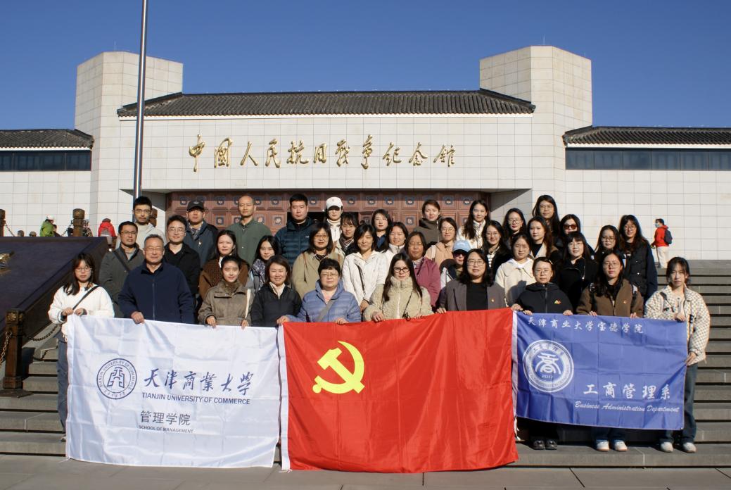深化党建引领合作交流,强化高校协同育人合力,11月13日,工商管理系与天津商业大学管理学院联合开展党建包联共建活动。工商管理系党总支书记李津涵、天津商业大学管理学院党委书记庞文生带领两校师生党员代表赴北京开展现场学习,以沉浸式红色教育与实地调研提升党性修养与实践探索能力。