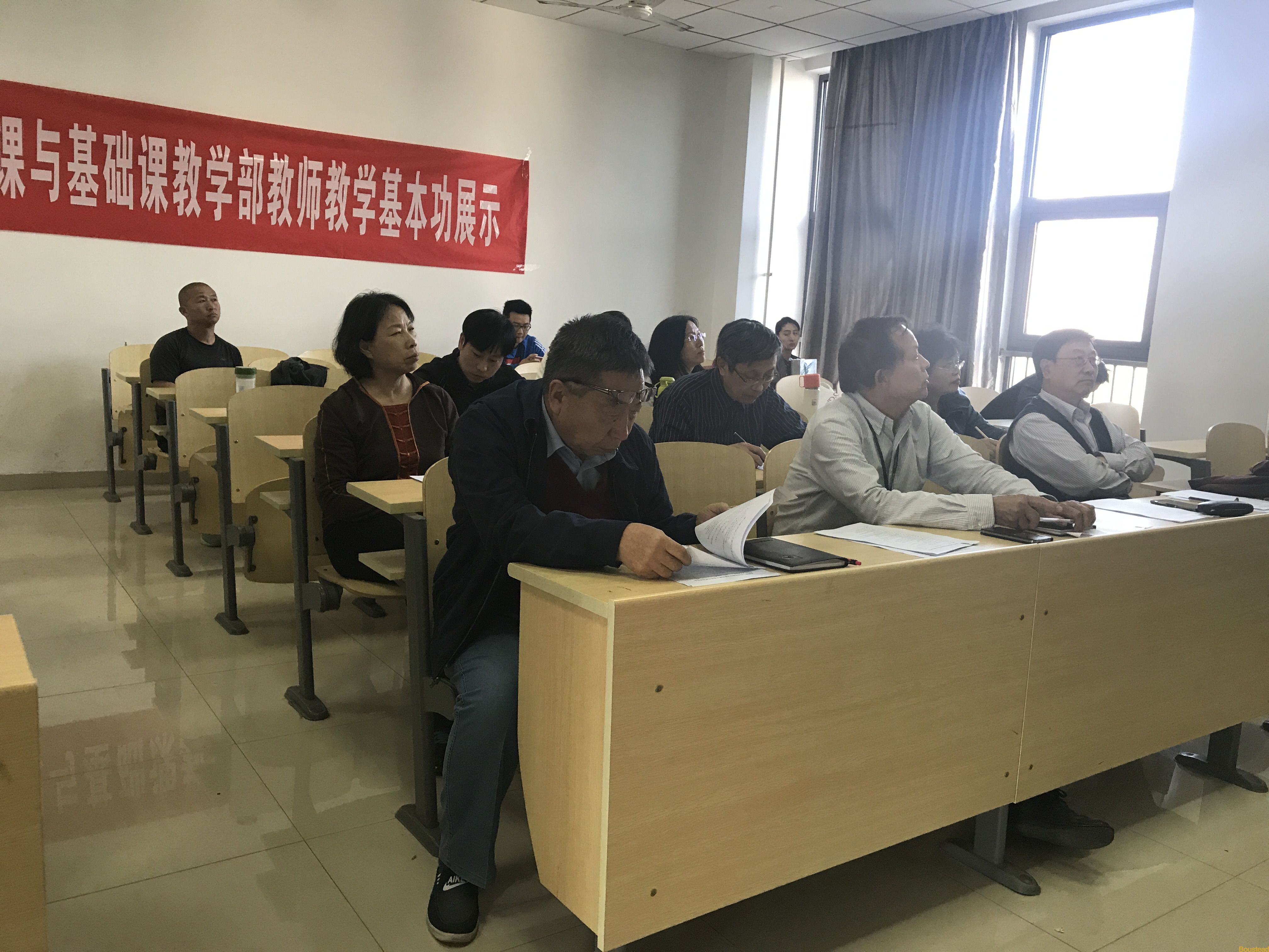 依照学院2017年工作要点,我部将提高教学质量作为工作的重中之重,于4月19日、26日开展了“思政课与基础课教学部教师教学基本功展示”活动,为期2周。本次活动共有6名教师做教学展示,涵盖瑜伽、足球、大学语文、微积分、中国近现代史纲要等多门主要课程。本次活动邀请了张成副院长、学院督导组朱彤教授、吕荣胜教授为主要评委。参加展示的教师将平时上课的基本面貌浓缩在短暂的20分钟内,本次活动取得了良好的效果,对促进不同学科间教师的相互交流、提高教学质量起到了重要作用。