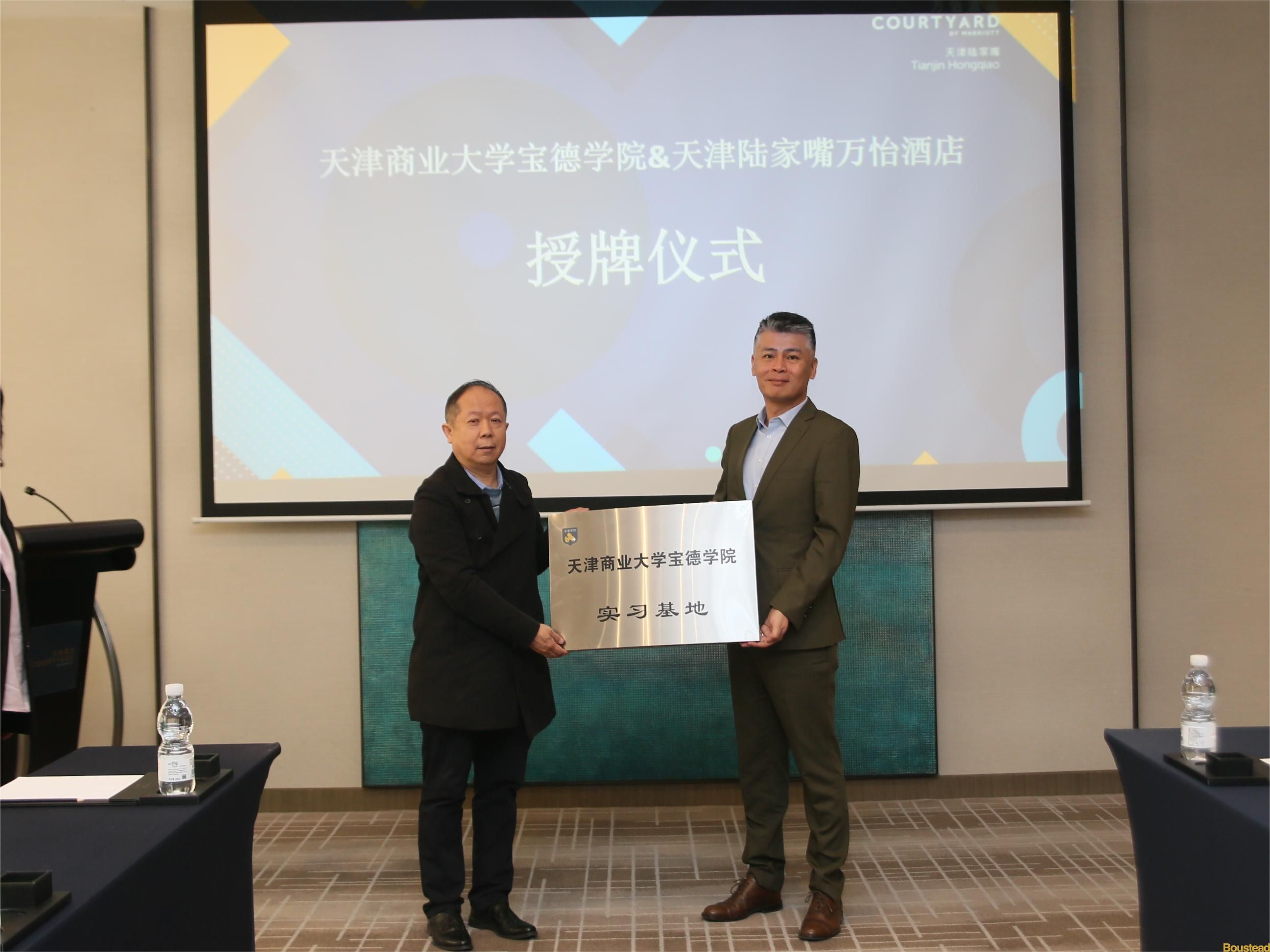 在学习贯彻习近平总书记视察天津重要讲话精神过程中,学院坚持将学习成果转化为实际行动,3月26日,学院党委书记曹军带队前往天津陆家嘴万怡酒店开展访企拓岗工作,曹军代表学院与酒店代表进行了座谈并举行了实习基地授牌仪式。陆家嘴万怡酒店总经理葛英杰、部门总监及工商管理系有关领导老师出席。
