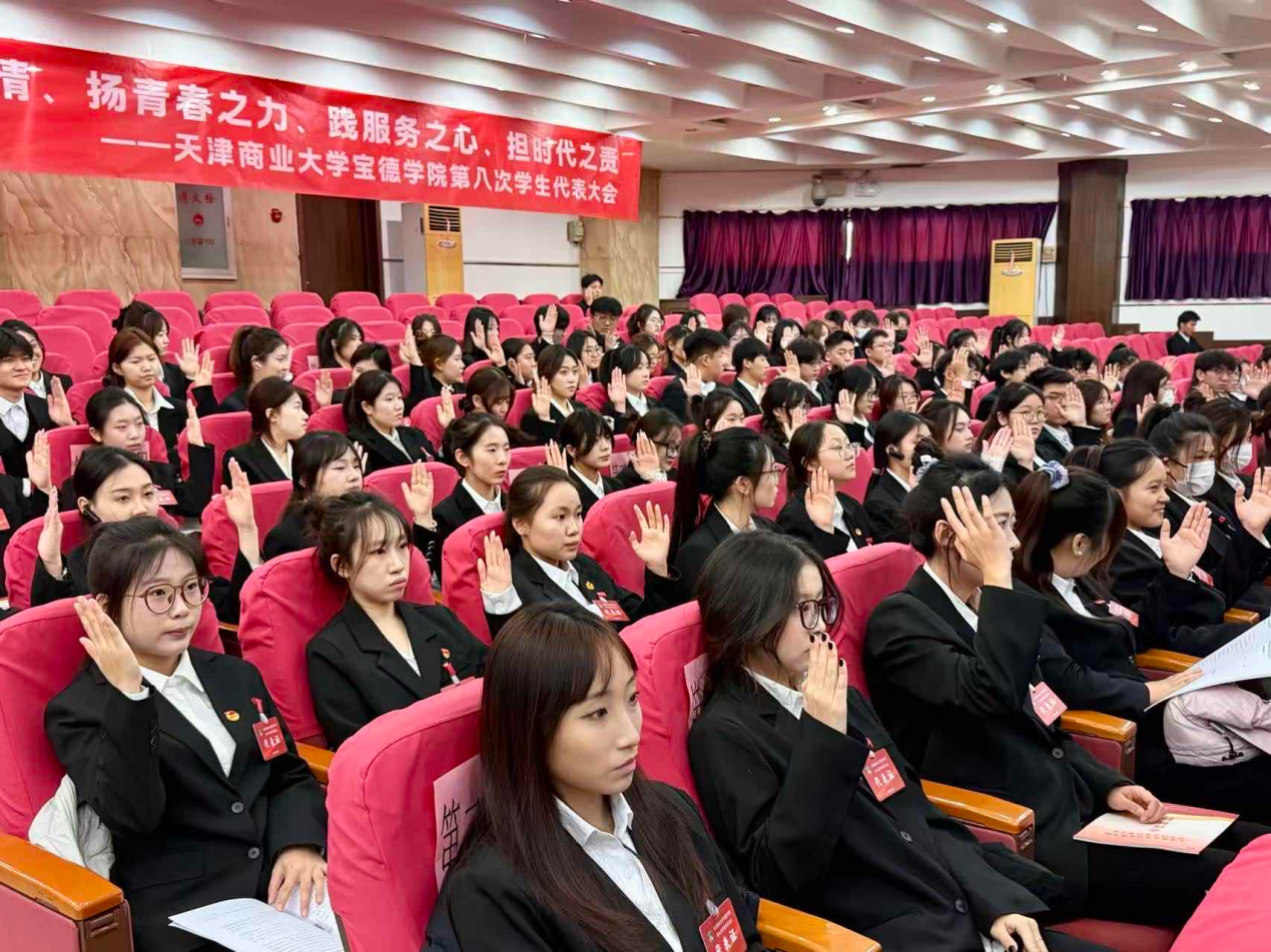 大会期间,代表们认真审议并通过了第七届学生会工作报告和《天津商业大学宝德学院学生会章程修正案》,选举产生了由12名委员组成的第八届学生委员会及3名学生会主席团成员。新当选的学生骨干表示,将牢记“全心全意为同学服务”的宗旨,搭建好学院与同学的沟通桥梁,以实际行动回应师生期待。