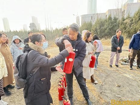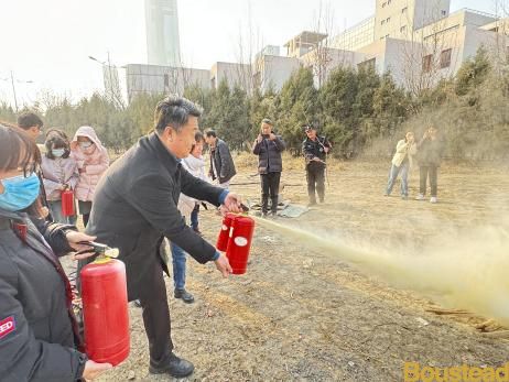 讲解结束后,徐延阁带领管理系全体教师在楼区内消防栓和校园南侧空旷区域进行了灭火实战演练,主要项目为消防栓、消防水带、灭火器的使用。