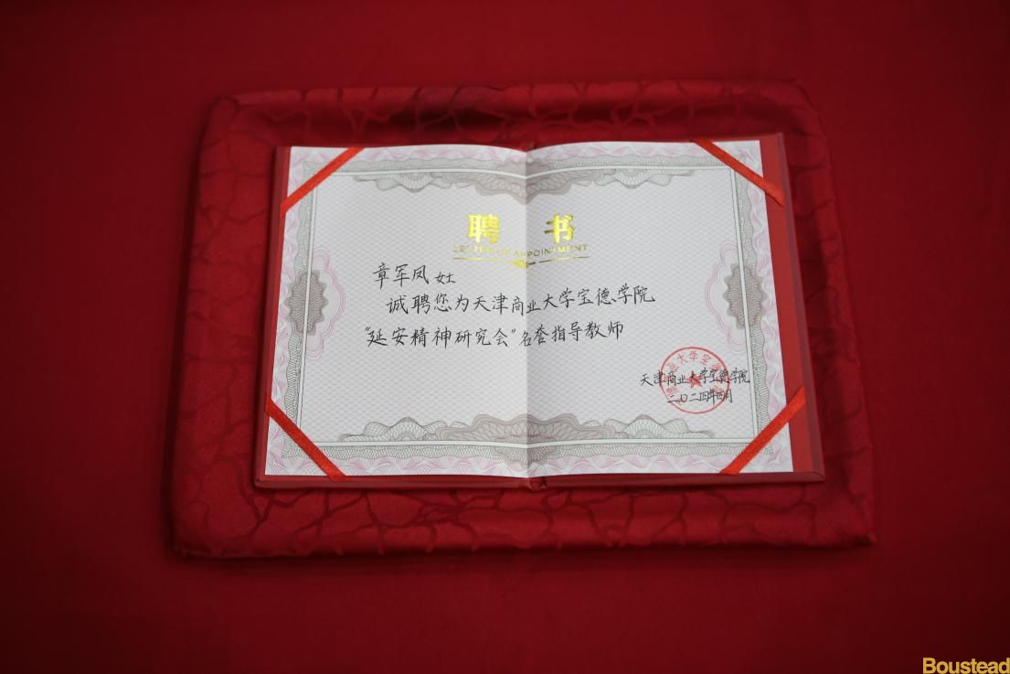 会议在庄严的国歌声中开幕,李铠宣读了换届新组织机构成员名单并为章军凤教授颁发聘书,正式聘请章军凤教授为我院延安精神研究会名誉指导教师。