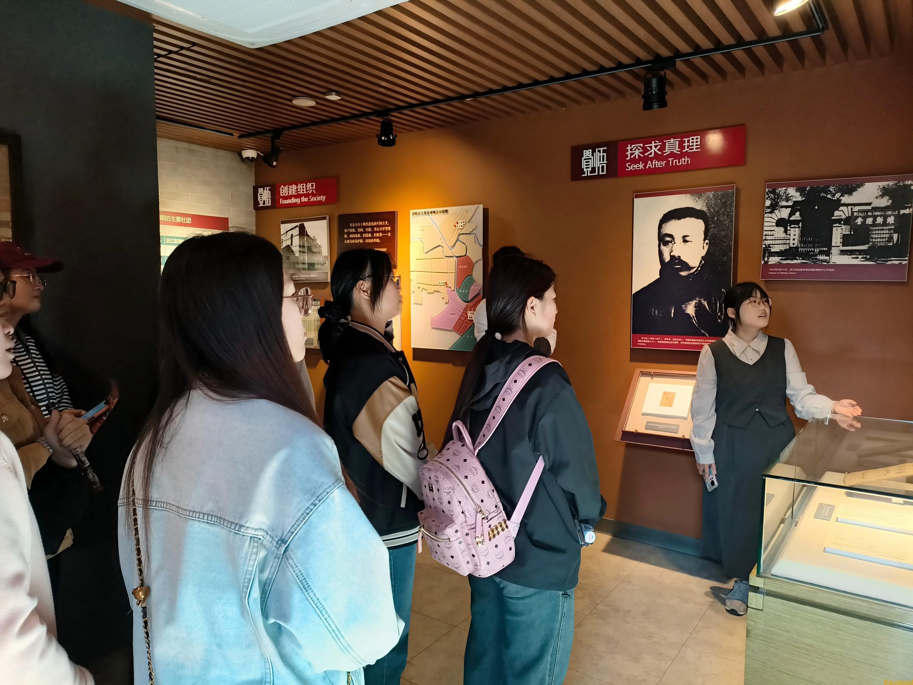 觉悟社纪念馆作为天津重要的党性教育和爱国主义教育基地,承载着周恩来、邓颖超等革命先辈在“五四运动”时期的革命精神与历史记忆。展馆内,大量珍贵的历史文献、照片、绘画及雕塑生动再现了觉悟社成员开展革命宣传、投身民族解放斗争的光辉事迹。同学们认真聆听讲解,深入了解觉悟社的创建背景、发展历程及其在中国革命进程中的重要作用。