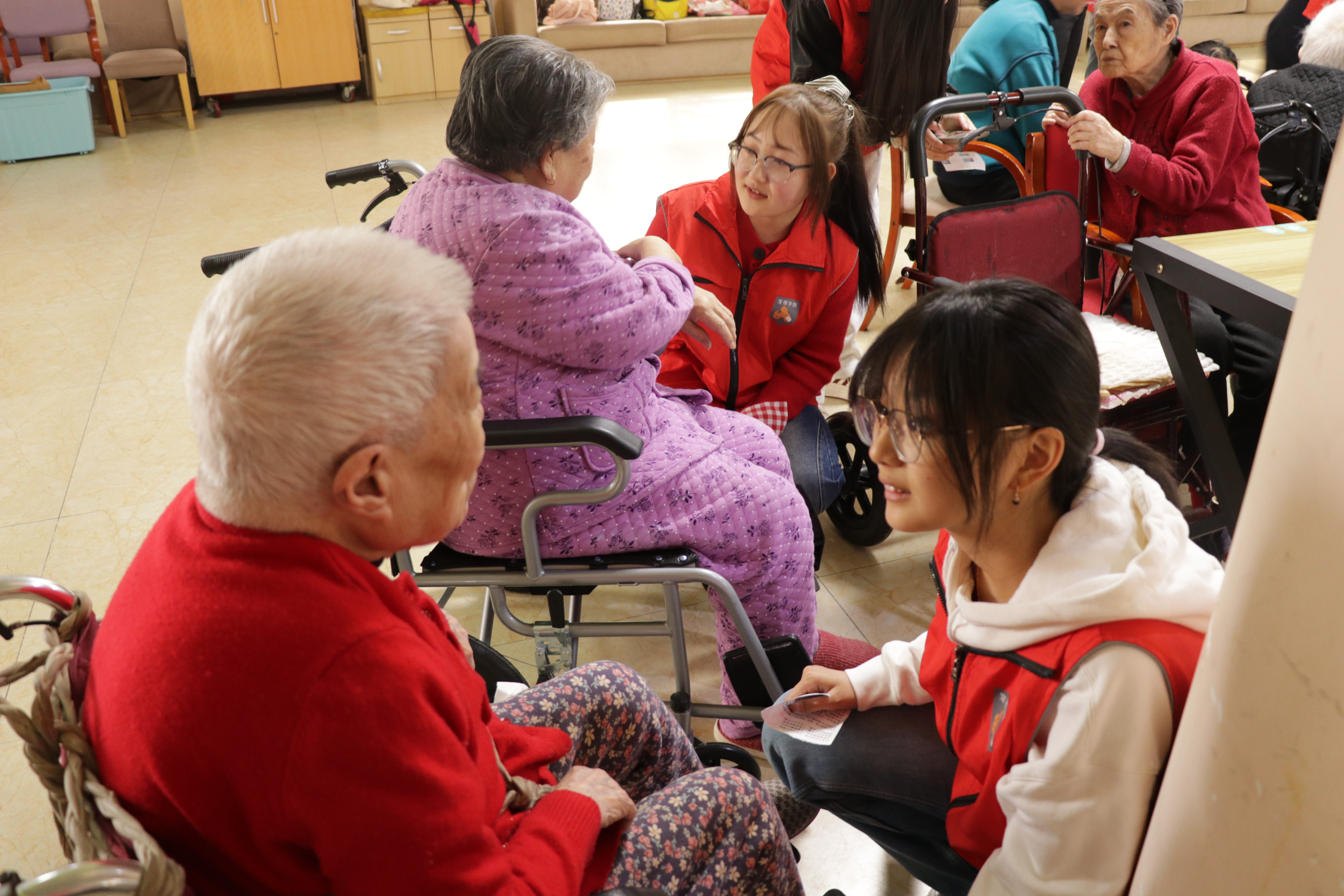 在科普宣传之外,志愿者还组织开展文艺表演与互动活动,通过歌曲演唱、诗歌朗诵、趣味游戏和手工制作等形式,与老人们进行深入交流,在轻松愉快的氛围中增进情感联结,营造温馨融洽的活动氛围。