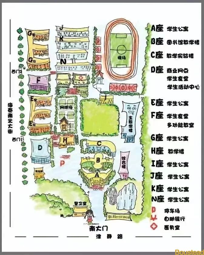 天津市西青区津静路28号宝德学院西二门报到现场。