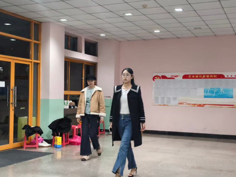 服装表演社排练区满是专注,大家跟着社团成员打磨台步,彼此眼神打气,退场后互相夸赞,默契十足。