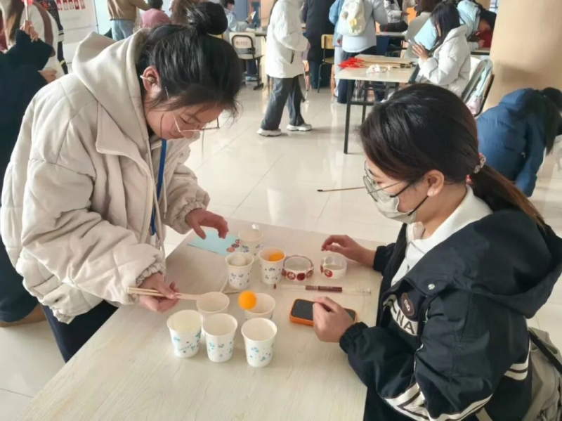 活动现场人声鼎沸,处处洋溢着热闹喜庆的节日气息,非遗体验与传统民俗游戏相映成趣,为同学们打造了一场沉浸式的文化盛宴。五彩斑斓的灯谜前人头攒动,大家驻足凝视、凝神思索,在字里行间探寻传统文化的趣味,猜对谜底时的欢呼与笑语此起彼伏;画表情元宵摊位前,同学们拿起画笔尽情创作,为圆润的元宵添上灵动可爱的眉眼表情,一笔一画尽显童真创意,让小小的元宵变得鲜活有趣;绕口令挑战区,同学们口齿伶俐,流利的话语引得现场掌声不断;古韵十足的投壶游戏前,大家躬身瞄准、轻掷箭矢,沉浸式体验古代文人雅士的休闲雅趣;手工DIY体验区同样人气高涨,鱼灯、扇子拓印、醒狮灯笼制作三项非遗手作深受同学们喜爱。大家认真拼装、绘制、装饰,一盏盏寓意吉祥的鱼灯、醒狮灯笼次第点亮,一把把独具韵味的拓印扇子徐徐成型。同学们在动手实践中感受传统工艺的魅力,让非遗文化在指尖生动传承。
