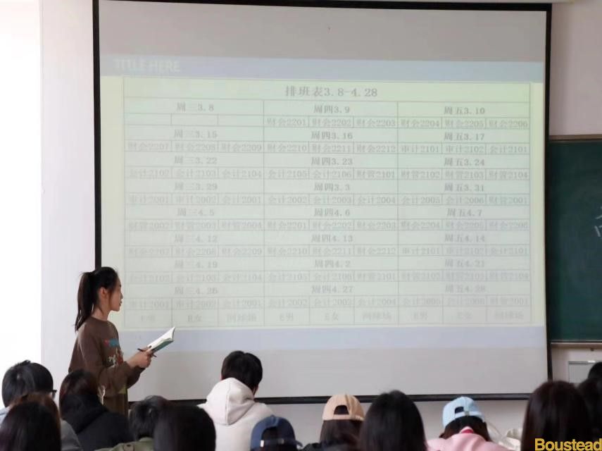 生活部22级干事史安琪介绍了后期劳动的劳动场地分布图以及排班表,方便各班有序的开展活动。