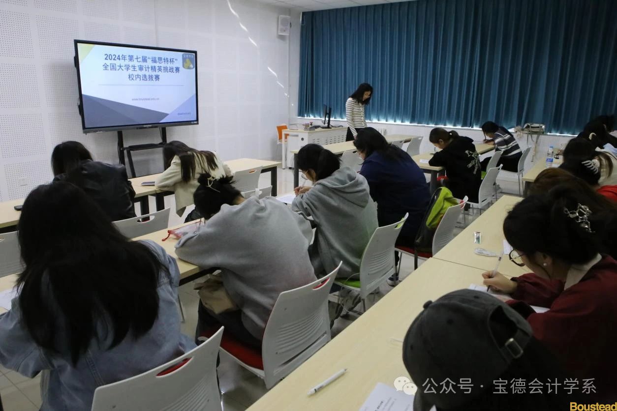 为深入贯彻党的二十届三中全会精神,推动我国审计学专业自主知识体系构建和拔尖创新人才培养,积极探索审计学专业发展的新领域、新路径和新方法,创新实现大数据、区块链等信息技术与审计专业教育的深度交融,培养适应社会经济发展需要的高素质专业化审计人才,会计学系于2024年10月10号特此组织举办第七届“福思特杯”全国大学生审计精英挑战赛校内选拔赛。