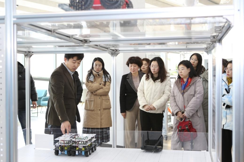 下午14时,活动一行来到中新科技园,参观新加坡科技设计大学生态城科创中心。在工作人员的引导下,党员们参观了科创中心的研发平台与成果展示区,深入了解国际合作背景下科技创新、人才培养的先进理念与实践经验,就产学研融合、专业人才赋能区域发展等话题展开交流探讨。