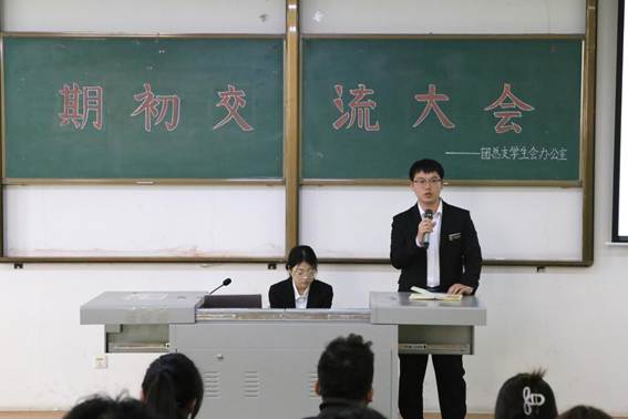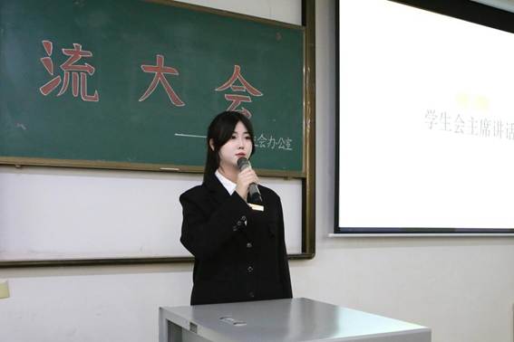 大会第三项,学生会主席闫飞发言。她结合自身工作经验,从活动策划、部门联动等角度,对新学期工作开展提出具体建议,强调要强化流程规范、提升活动质量,鼓励大家以严谨细致的态度落实各项任务。