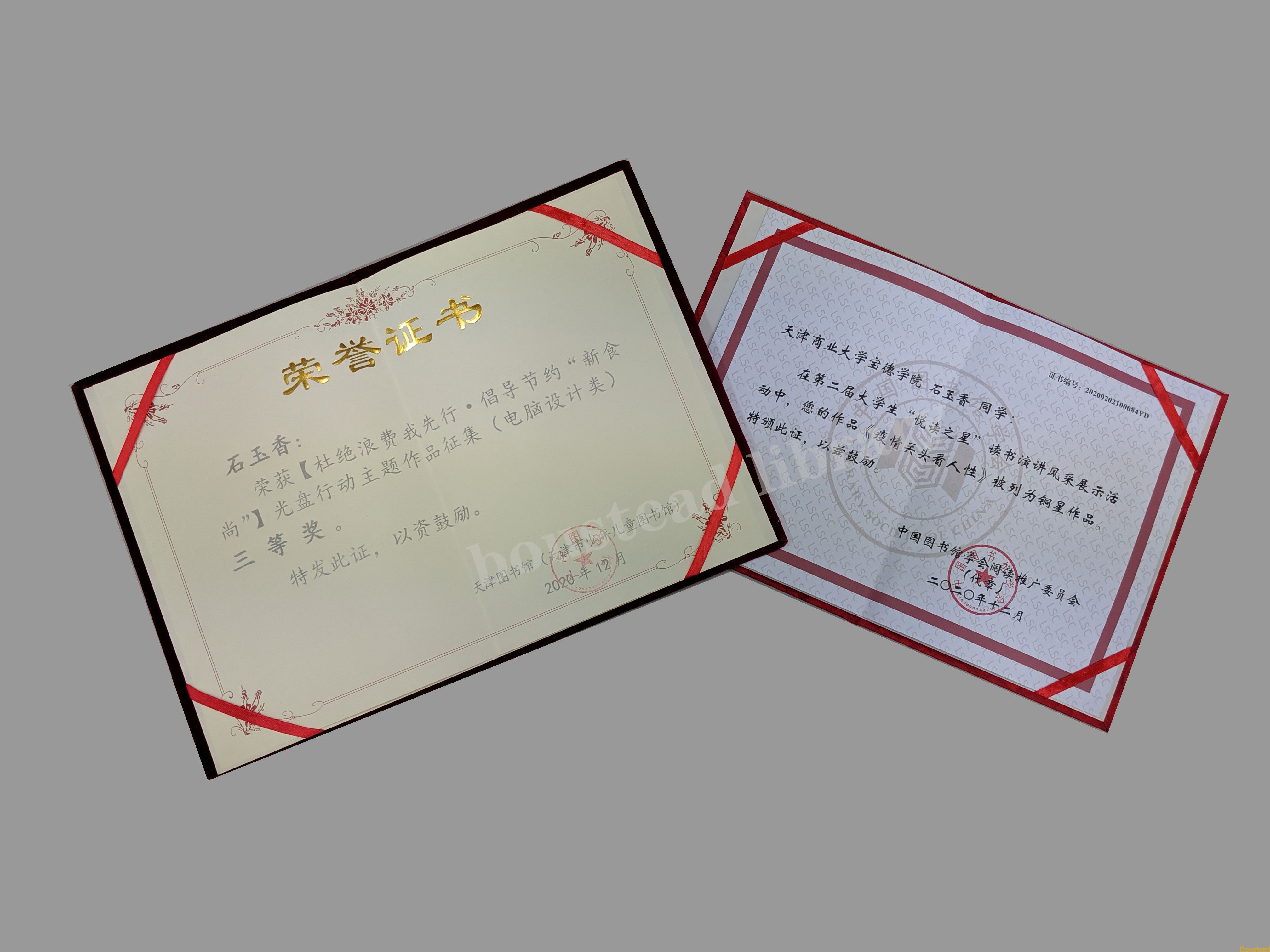 学院石玉香同学在参加图书馆组织参与的活动中分别获得两项大奖