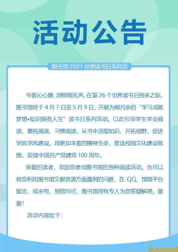 图书馆2021世界读书日系列活动公告
