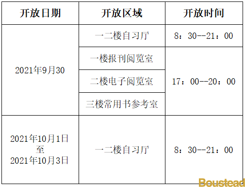 2021年国庆节图书馆开馆安排