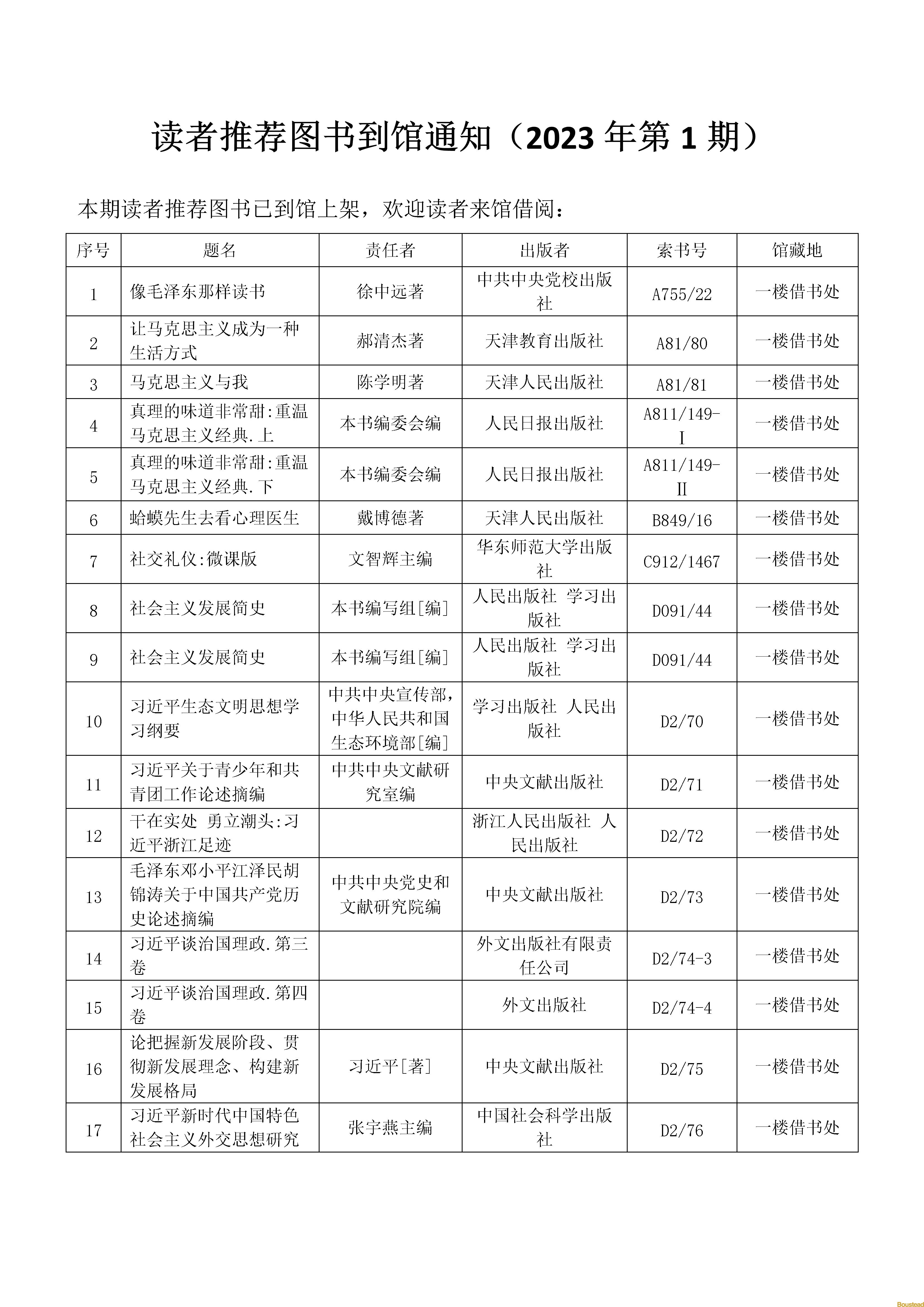 2023年第1期读者推荐图书到馆通知