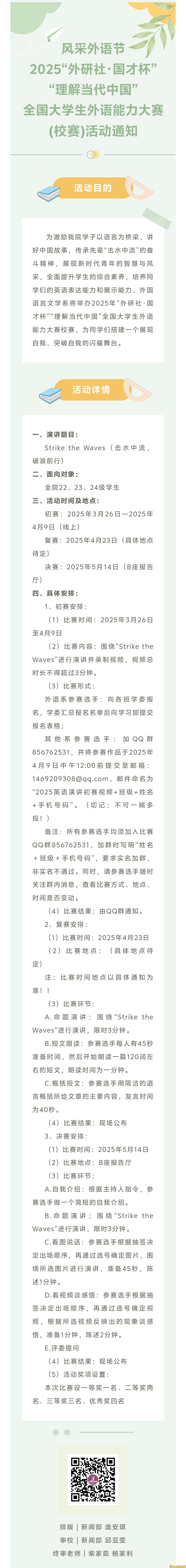 风采外语节|2025“外研社·国才杯”“理解当代中国”全国大学生外语能力大赛(校赛)活动通知