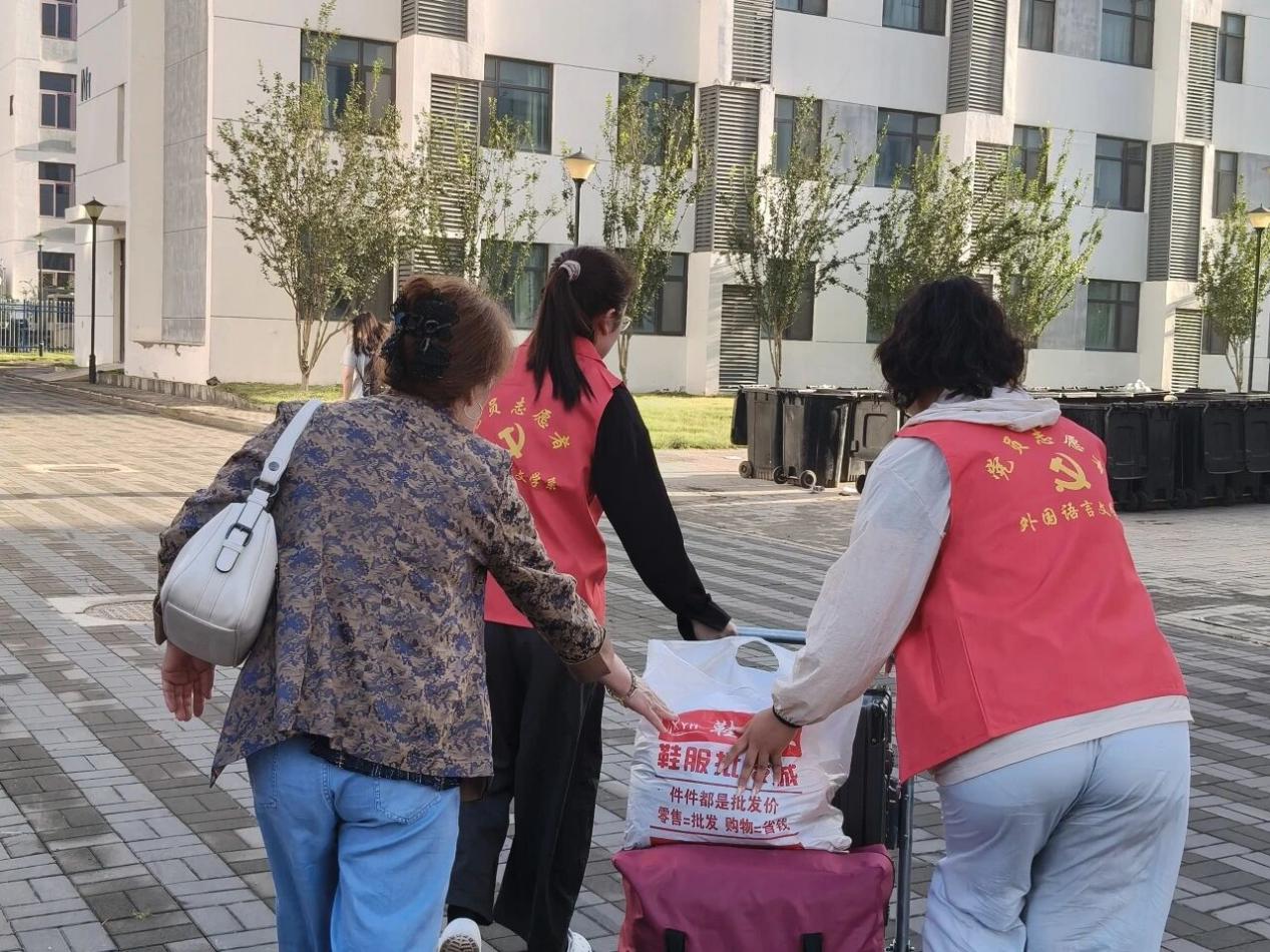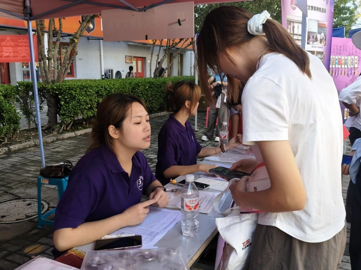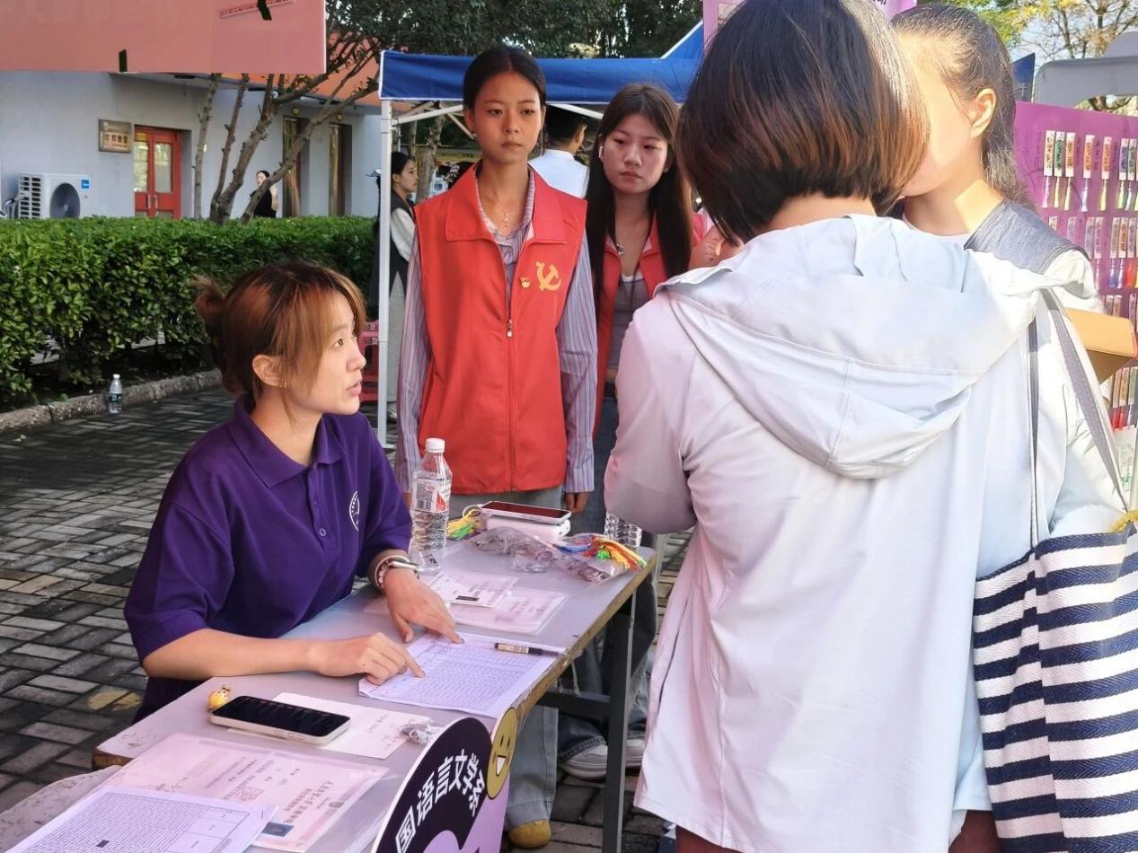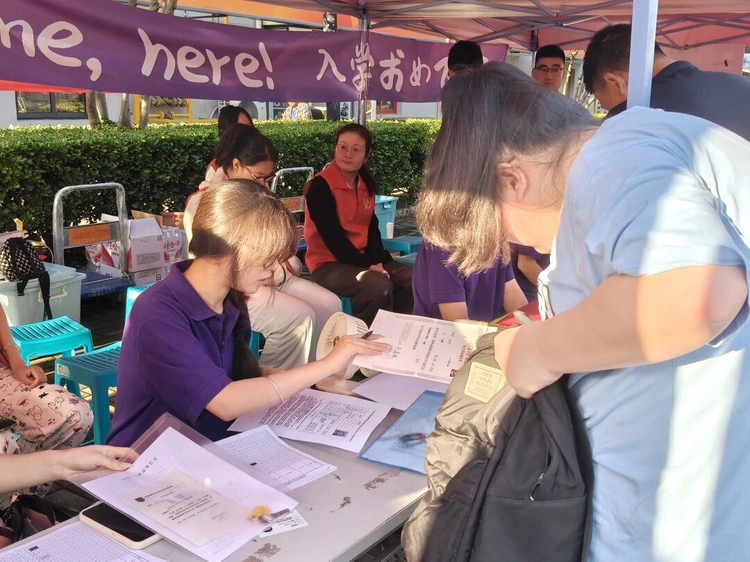 校园里的“红马甲”更是随处可见——志愿者们穿梭在各个角落,主动接过沉重的行李,细致解答关于教学楼位置、食堂口味的各种疑问。一句句真诚的“欢迎来到宝德外语系”,一个个灿烂的微笑,让秋日的校园充满了家的温度。
