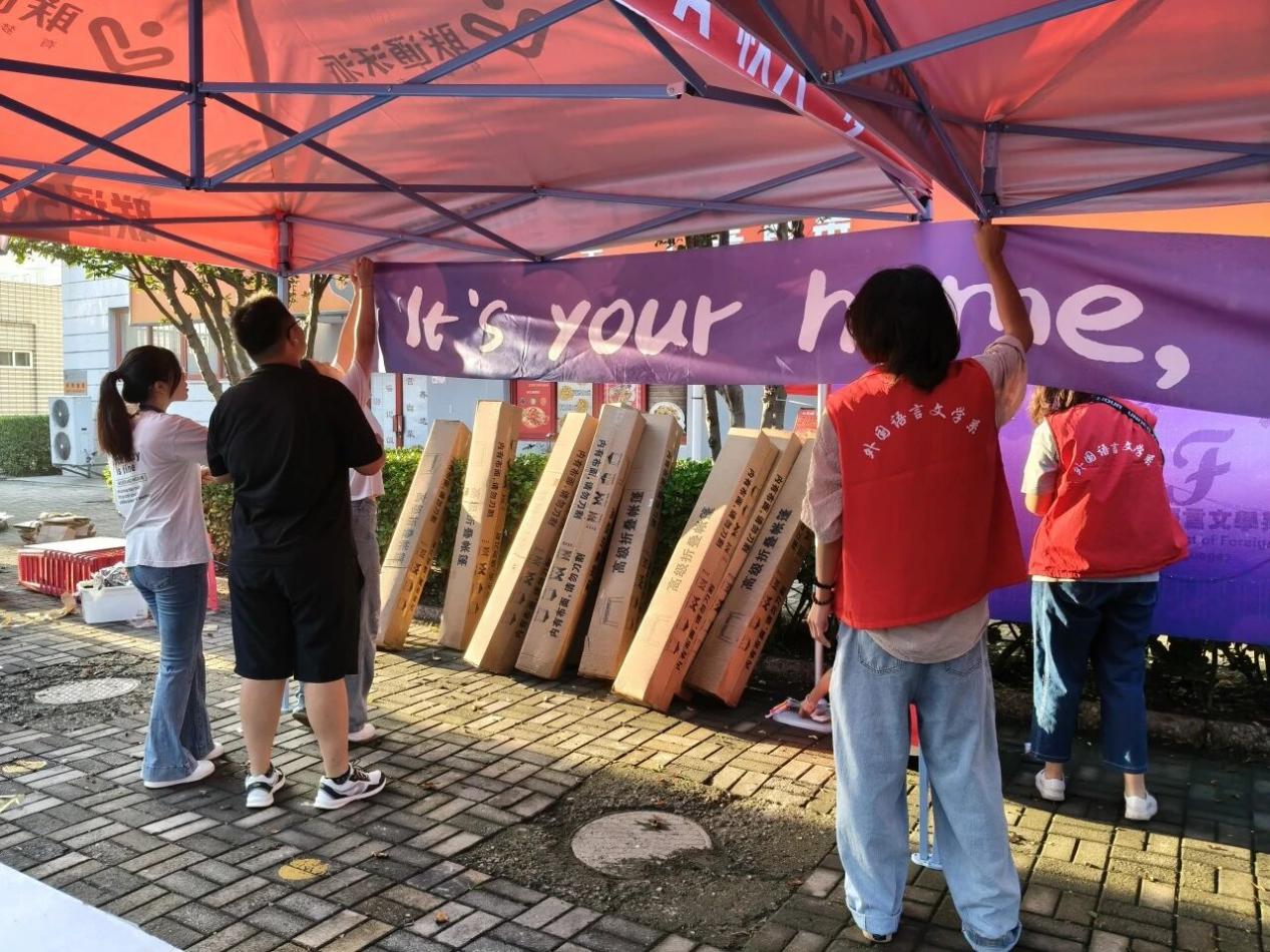 9月6日清晨6点,天刚微亮,外语系迎新志愿者们已集结完毕。大家迅速行动,在报到点悬挂“欢迎新同学”横幅,摆放指示牌与咨询台,将迎新礼包整齐陈列。此外,还特意准备了饮用水、遮阳棚及行李寄存区,用细节让新生与家长感受贴心关怀。