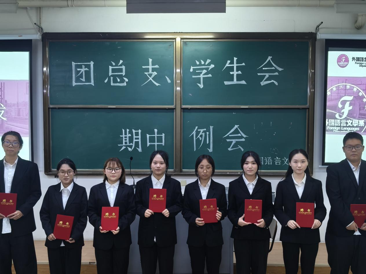 为感谢上一届主席团与部长团的辛勤付出,由我系团总支书记刘福来老师为22级主席团、23级部长团成员颁发荣誉证书。会场响起的阵阵掌声,既是对他们过往辛勤付出的高度肯定,也是外语系团学工作薪火相传的生动体现。