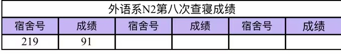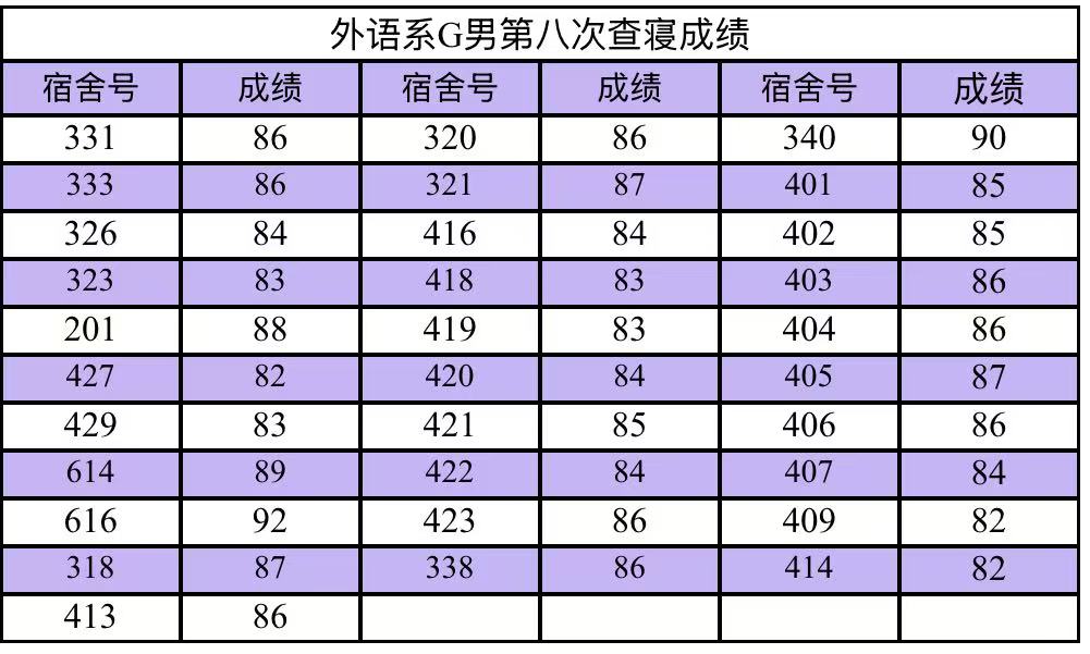寝分公示栏 | 创建文明宿舍:第八次宿舍评分情况