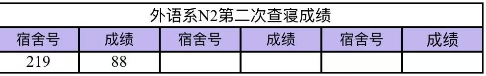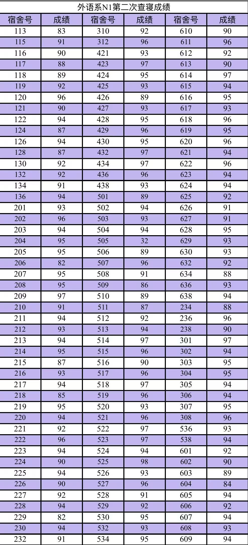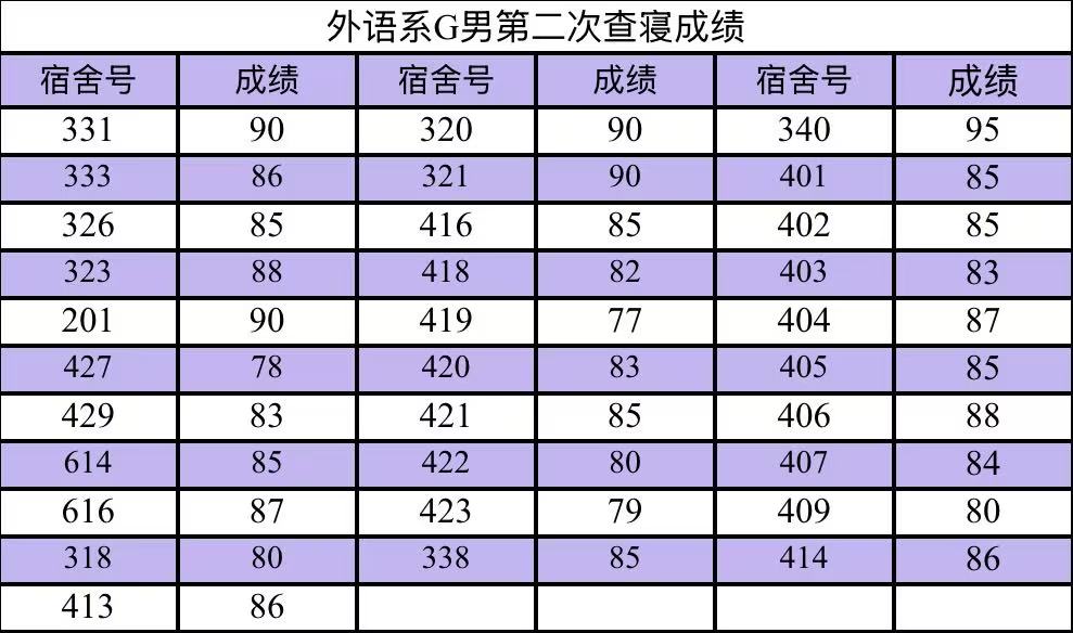 寝分公示栏 | 创建文明宿:外语系第二次宿舍评分情况