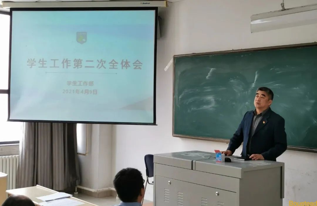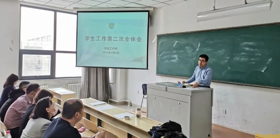 4月9日,4月份学工队伍全体会在主楼214召开,党委专职副书记、副院长张成出席,学生工作部负责同志、各系行政副主任和全体辅导员参会。