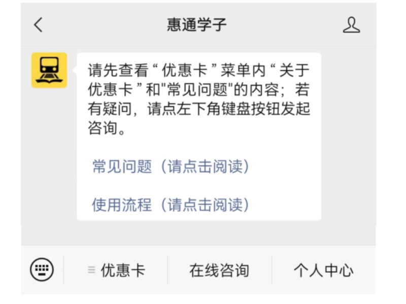 注:所有学生先通过“惠通学子”公众号信息注册后在拿着火车票磁条优惠卡缴费截图到学工部领取磁条。