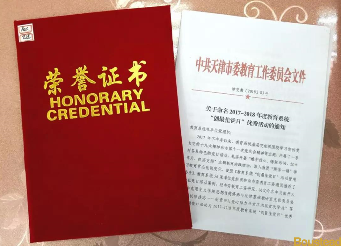 本次获奖是我支部深入学习贯彻习近平新时代中国特色社会主义思想和党的十九大精神的体现,我们将在以后的工作中继续以习近平总书记对天津工作“三个着力”重要要求为元为纲,坚决贯彻新时代党的建设总要求,认真学习借鉴先进典型经验,以提升组织力为重点,突出政治功能,不断增强基层党组织的政治领导力、组织覆盖力、群众凝聚力、社会号召力、推动发展力和自我革新力,持续深化“五好党支部”创建,推进基层党建各项重点任务落实,为推进习近平新时代中国特色社会主义思想在教育系统扎实实践提供坚强组织保证。