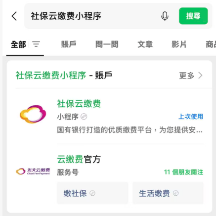 第二步:点击“社保云缴费”小程序进入缴费页面。