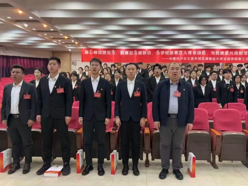 正逢盛世,使命在肩。站在新的历史起点,天津商业大学宝德学院全体团员青年将以本次大会为契机,传承红色基因、勇担时代使命,以昂扬向上的精神面貌、只争朝夕的奋进姿态,在全面建设社会主义现代化国家的火热实践中绽放青春绚丽之花,为学院发展与民族复兴书写属于宝德青年的精彩华章!