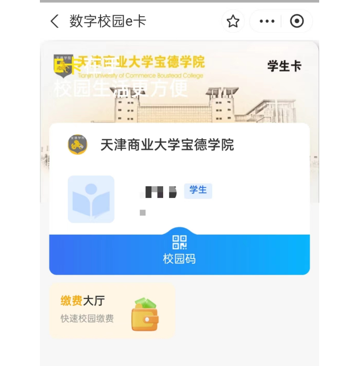 天津商业大学宝德学院电子校园卡(以下简称:电子校园卡)是内置于支付宝卡包中的虚拟校园卡。通过支付宝客户端与多媒体POS机终端设备配合,实现扫码消费的全新支付的方式。