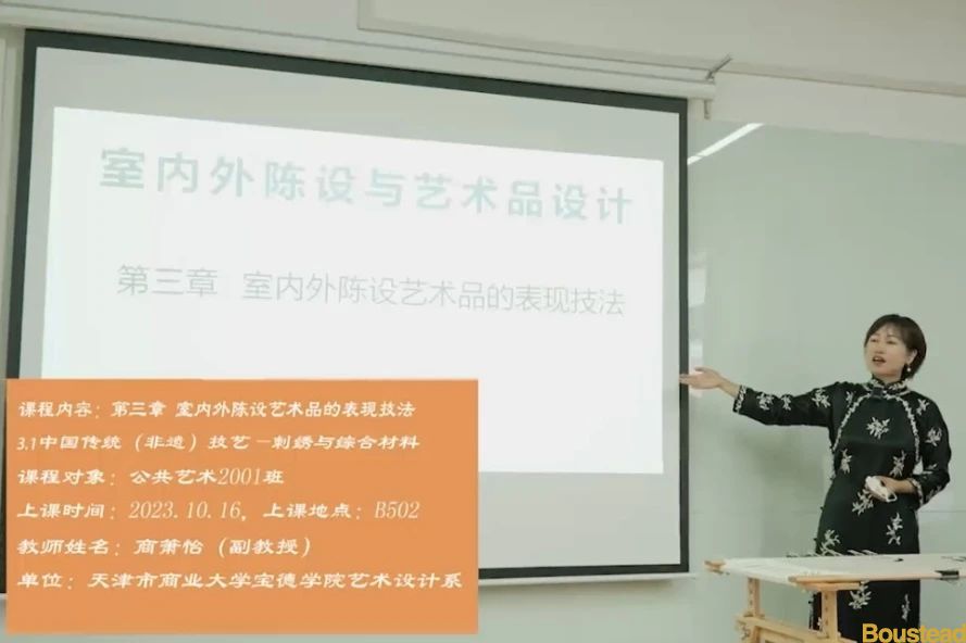 本课程旨在使学生了解室内外陈设与艺术品创作在当今室内外空间中的的装饰意义、文化价值意义以及呈现方式;立足于中国传统文化的基础上掌握设计原理、明确设计原则,从公共空间艺术品陈列及家居软装方面入手,以空间中的三维作品为载体,运用刺绣、羊毛纤维、挂毯、编织、纸雕纸艺、面料织造等综合方式,设计制作审美与文化价值兼备的艺术品;通过具体实践,了解其独特的表现形式和重要作用,掌握室内外陈设与艺术品创作的基本方法以及材质和工艺创新的多种可能性。