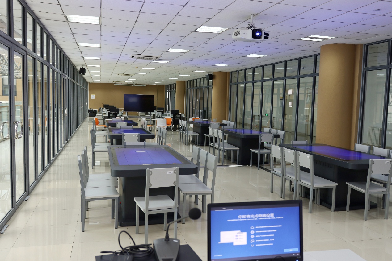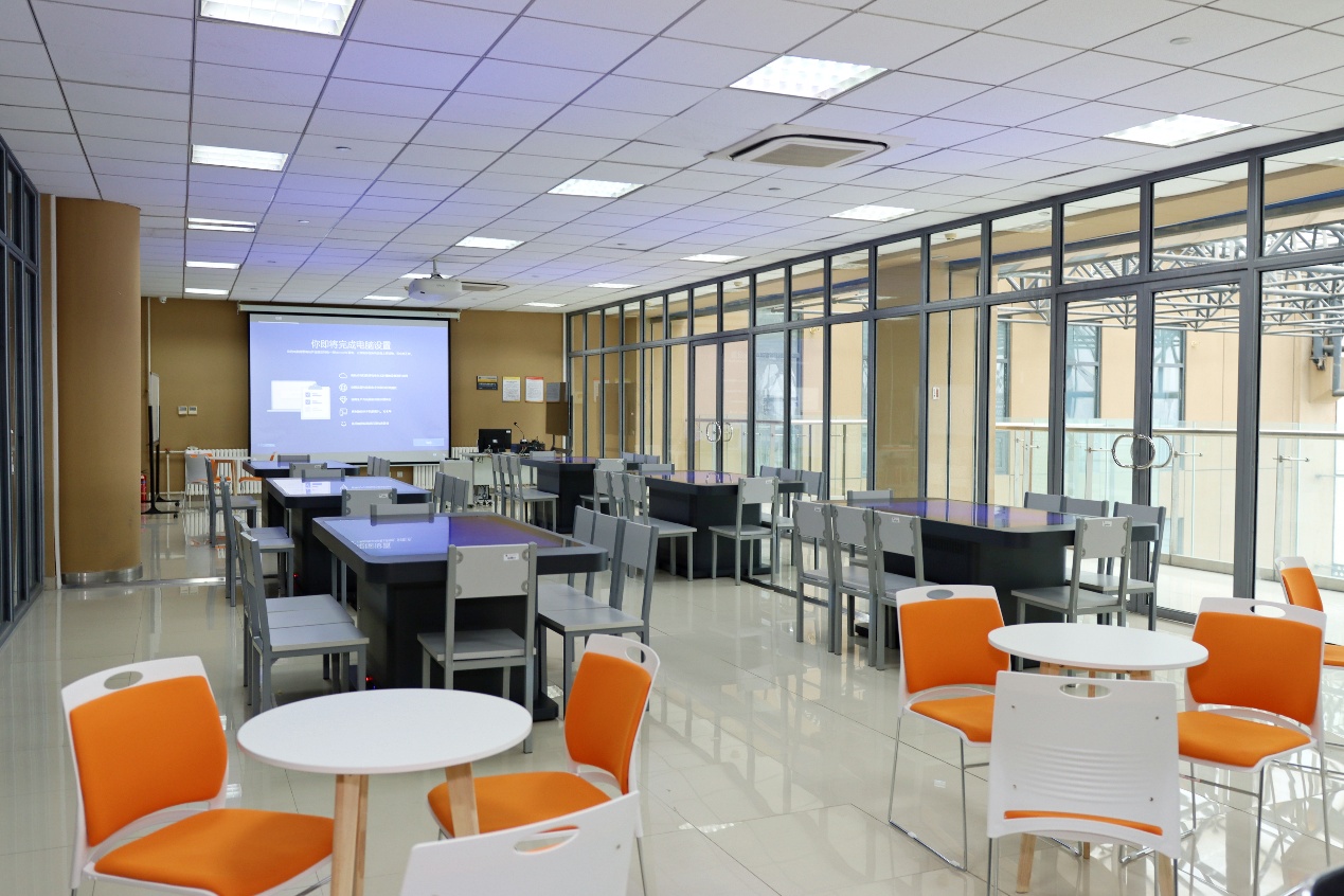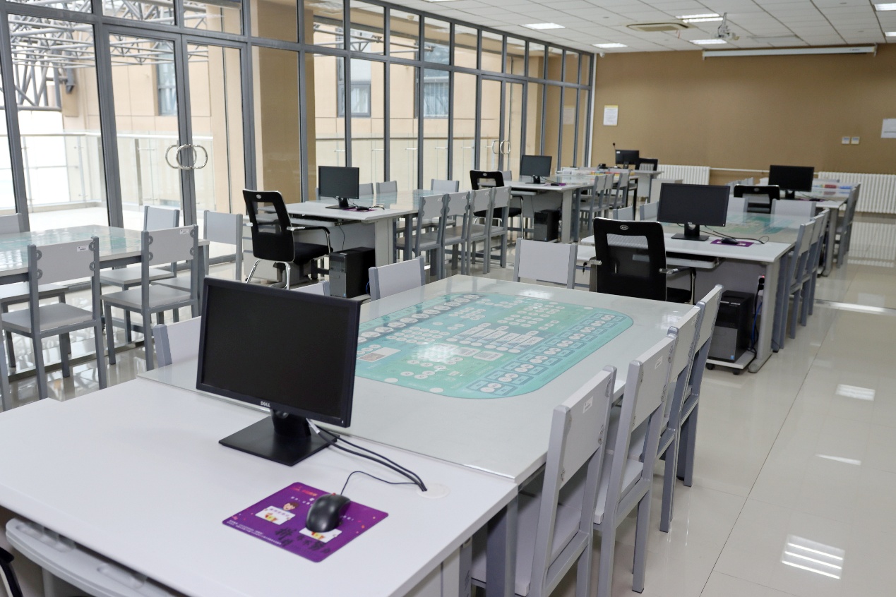 沙盘实验室位于主楼十层1009教室,于2017年建成,配备全新的六台沙盘机以及投影机、电视机等新型教学设备,全面满足工商管理系《沙盘模拟实验》课程需要。