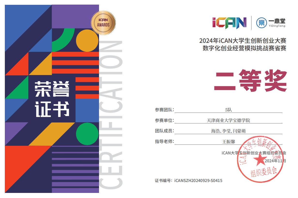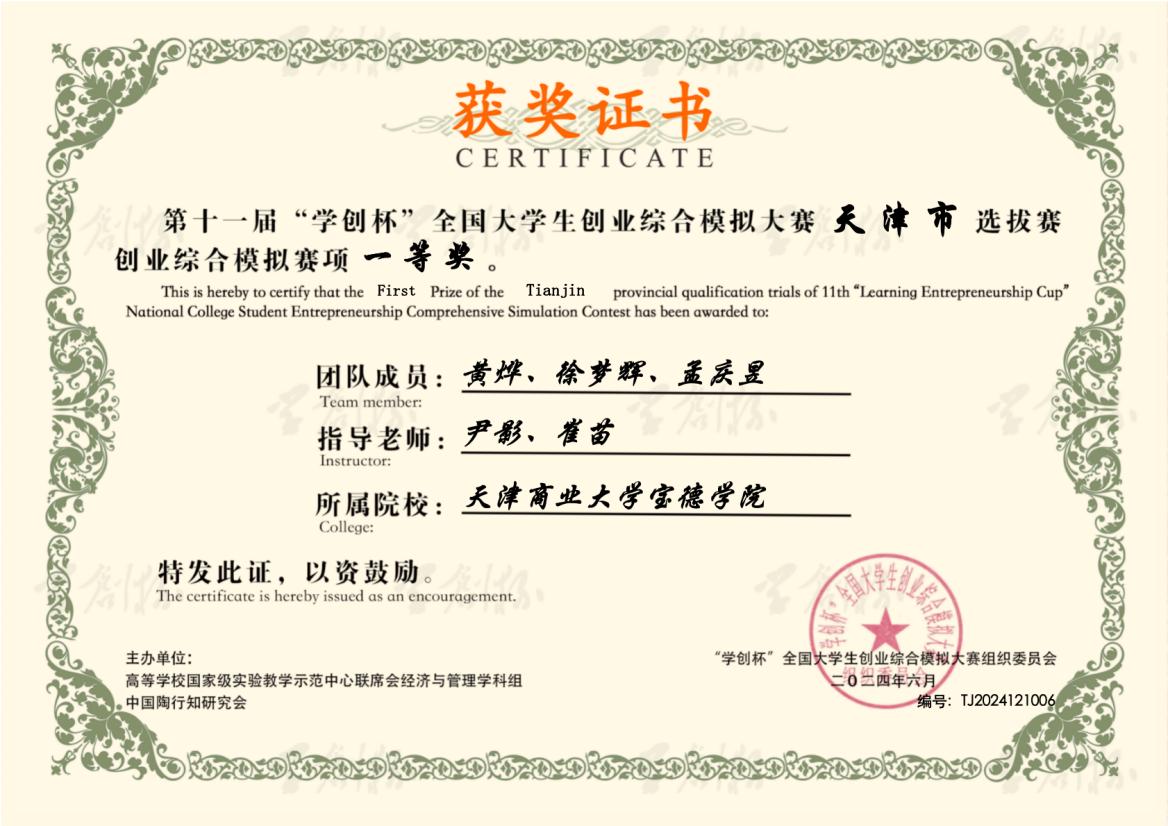 基于本实验室课程,管理系教师组织学生参加“学创杯”全国大学生创业综合模拟大赛,连续十年获得市级一、二等奖,在2022、2023、2024年分获国家级二等奖、特等奖和一等奖。参加iCAN大学生创新创业大赛/数字化创业经营模拟挑战赛区域赛,连续三年获得市级二、三等奖。