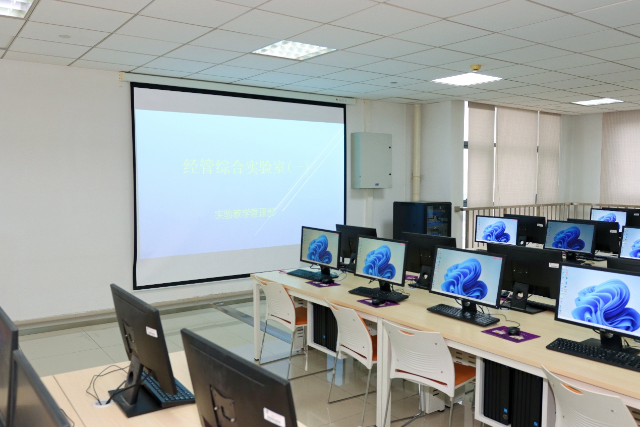 经管综合实验室(一)位于主楼十层1001-1003教室,于2025年建成,配备最新的PC计算机125台以及双投影设备,能够同时容纳三个教学班,可以满足经管系部所有系统软件运行需求,具有丰富的教学功能性与实用性,为师生们带来流畅、高效的学习与实训体验。